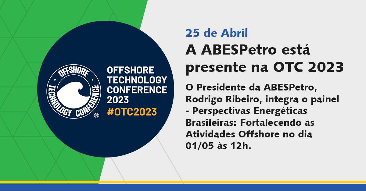 A ABESPetro estará presente na OTC 2023 que acontece entre os dias 01 e 04 de maio em Houston-EUA. Nosso presidente Rodrigo Ribeiro participa do painel “Perspectivas Energéticas Brasileiras: Fortalecendo as Atividades Offshore” – marcado para o primeiro dia do evento às 12h (horário de Brasília), no salão 302.