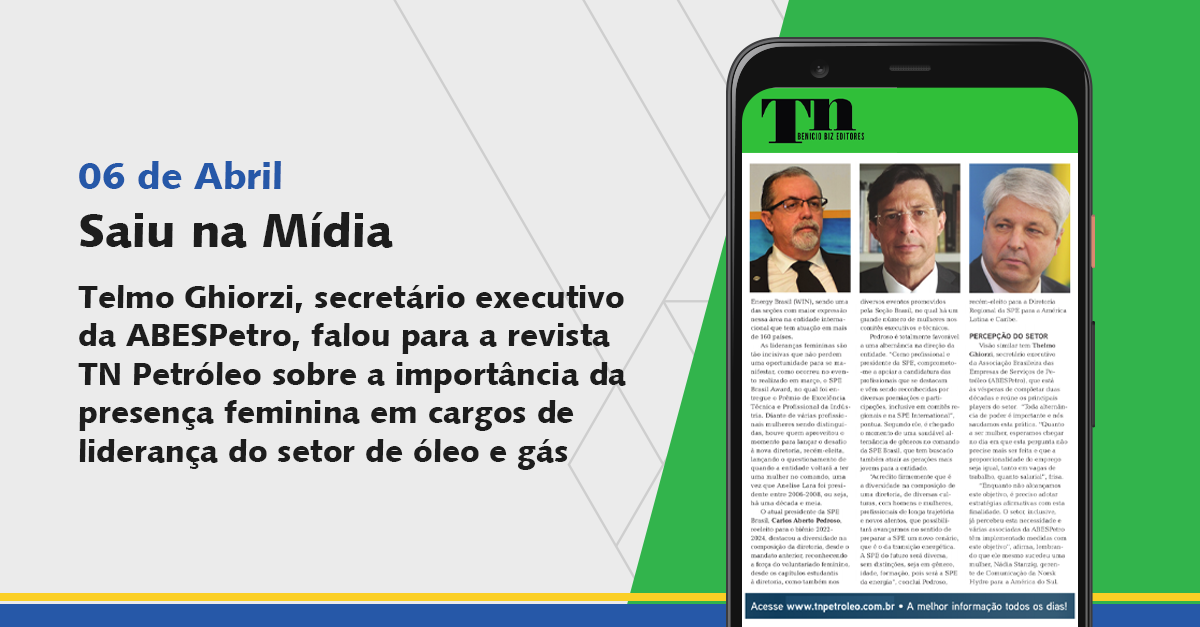 O secretário executivo da ABESPetro, Telmo Ghiorzi, afirmou em entrevista à última edição da revista TN Petróleo a importância da presença feminina em cargos de liderança.
