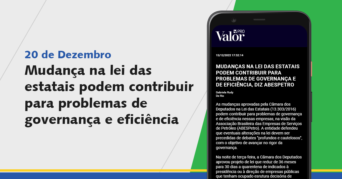 Posicionamento da ABESPetro sobre proposta de mudança na Lei das Estatais repercute na mídia.